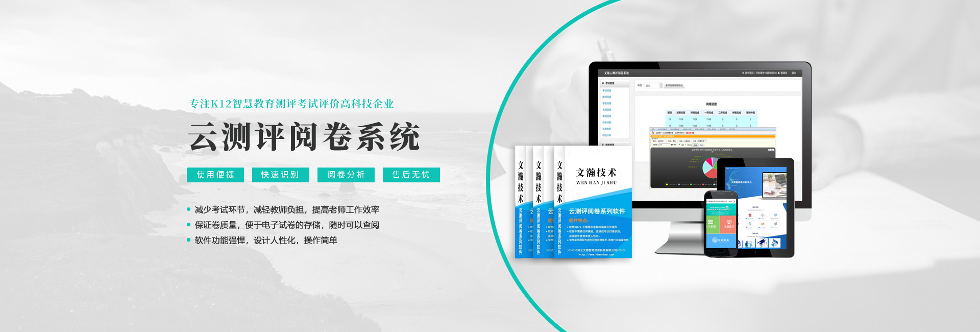 河北文瀚智考信息技術(shù)有限公司是一家專注教育的科技創(chuàng)新公司。本公司主營四大板塊產(chǎn)品:網(wǎng)上閱卷系統(tǒng)、光標閱讀機、答題卡和互動觸控液晶一體機。公司在數(shù)據(jù)處理產(chǎn)品領(lǐng)域(OMR)推出了一系列具有快捷,簡便,實用產(chǎn)品,···